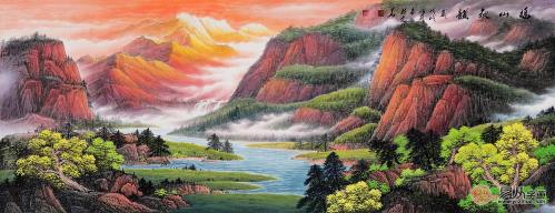 重彩山水画一般色彩鲜艳,富丽堂皇,庄重大方。重彩山水画以色彩作为画面的骨肉,通过画家对色彩的拿捏,使每一位观者真真切切的感受到作品中所蕴含的骨气,体会到重彩山水画在艳丽的外表外独居特色的阳刚之美。